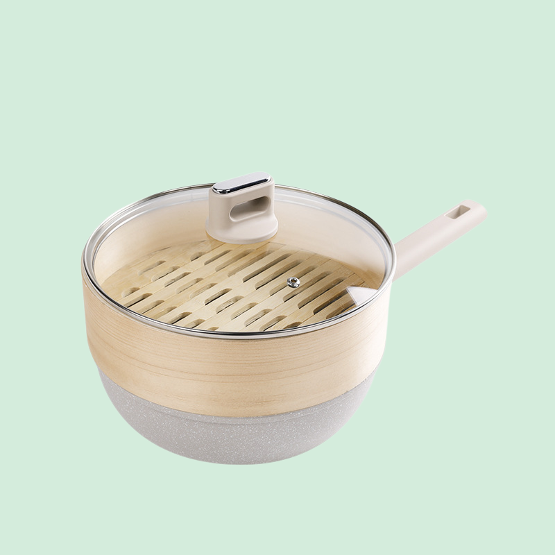 医療用石素材使用、ノンスティック加工でこびりつきにくい。ガスコンロ対応、多機能で家庭用に最適。お手入れ簡単、耐久性抜群。