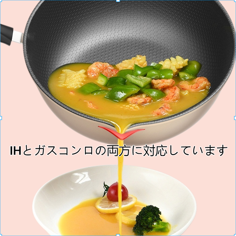 大型Cフライパンはノンスティック加工で焦げ付きにくく、お手入れ簡単。二重目的設計で家庭用調理に最適。電磁調理器とガス両対応。